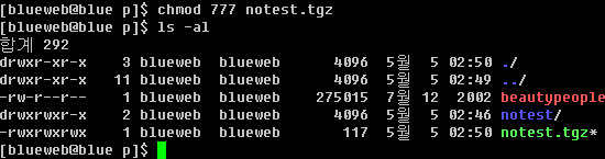 chmod 707 dir1 -R : dir1 °ú dir1 ÇϺΠÀÚ·á 707 ÆÛ¹Ì¼ÇÀ¸·Î º¯°æ